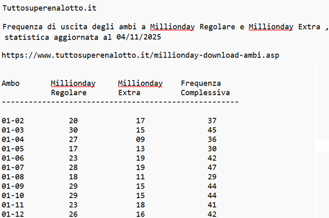 il file AMBI MILLIONDAY sempre aggiornato all'ultima estrazione.